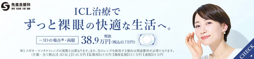 先進会眼科では、視力の左右差があってもICL手術は可能で、片眼だけでの手術も行っている と案内されています。